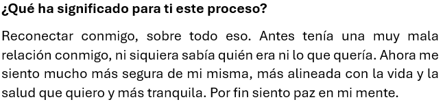 Es un proceso profundo para que vuelvas a sentirte tranquila, libre y en paz contigo misma.